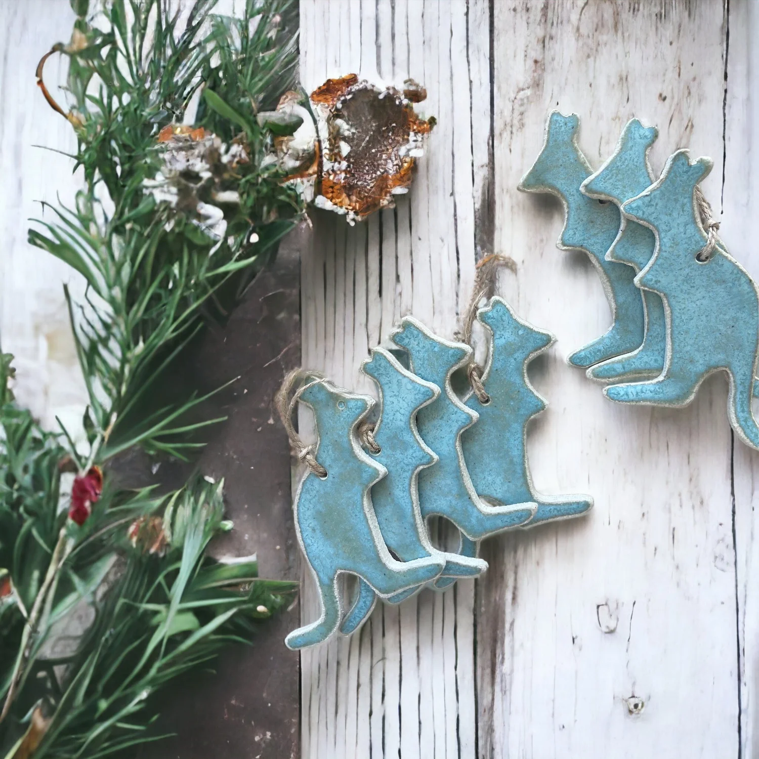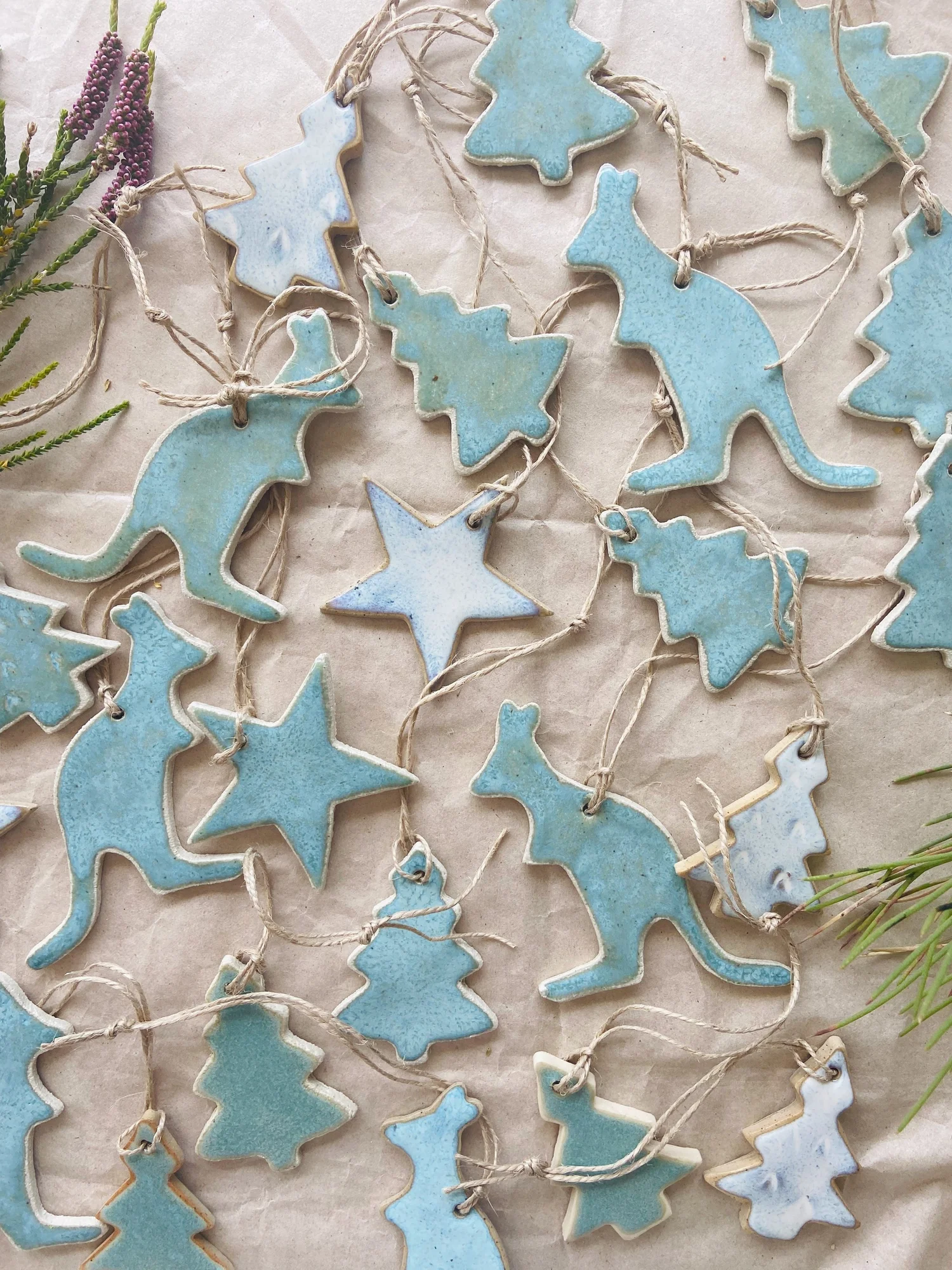 Why not treat yourself to a mystery box of mixed ceramic decorations? Packed with a delightful palette of gorgeous green, blue, and white glazes, these decorations are sure to be a hit. Your mystery box will include a variety of shapes, and to add a touch of Aussie flair, there will be three charming kangaroo decorations. It's a fun and festive way to add some surprise to your holiday decorations!